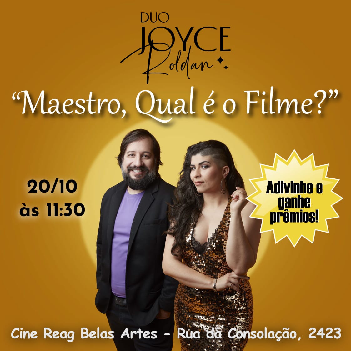 Vamos ter neste Bazar uma apresentação ao vivo exclusiva do Duo @joyceroldanartista e @marcio_roldan tocando os maiores clássicos do cinema no @reagbelasartes!