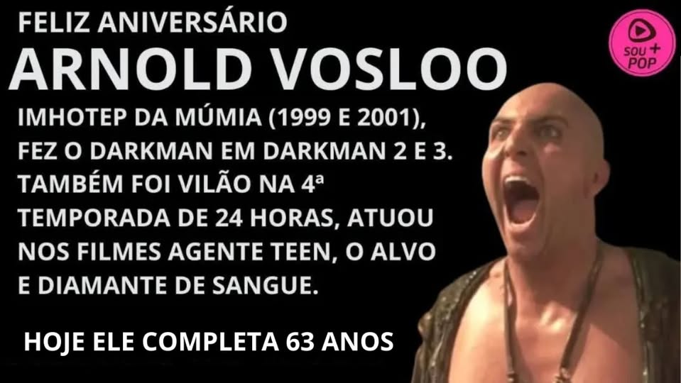 Arnold Vosloo atuou em A Múmia 1 e 2(1999-2001), O Alvo, Darkman 2 e 3, Agente Teen, Diamante de Sangue, Crepúsculo de Aço, O Ninho do Condor, 1492 - A Conquista do Paraíso, Caçada sem Trégua, Na Quarta Temporada de 24 horas, etc.